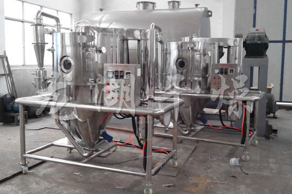 ZPG系列中藥浸膏噴霧干燥機是吸收國外技術開發的適用于熔點低、含糖高的中藥產品的干燥設備,并具有不粘壁、物料不焦化、不易吸潮等特點。該裝置根據干燥產品的特點和性質確定噴霧干燥的工藝條件,自動化程度高,操作方便,符合GMP要求。該裝置的成功開發,解決了多年來許多熔點低、含糖高的中藥產品不能用噴霧干燥的技術難點,也是對噴霧干燥在中藥制藥中的應用技術研究的新發展。