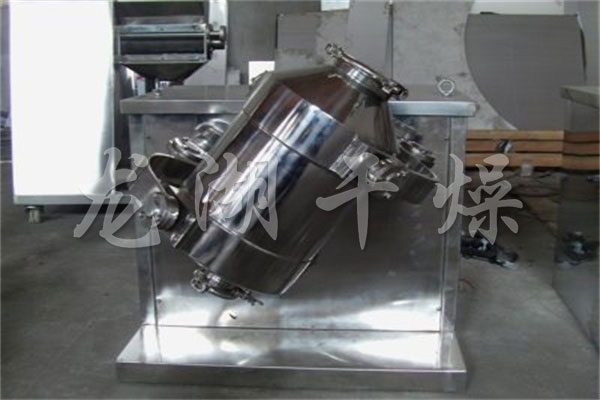 結構:該機由機座、傳動系統、電器控制系統、多向運動機構、混合筒等部件組成。與物料直接接觸的混合筒采用優質不銹鋼材料制造,桶體內外壁均經鏡面拋光。