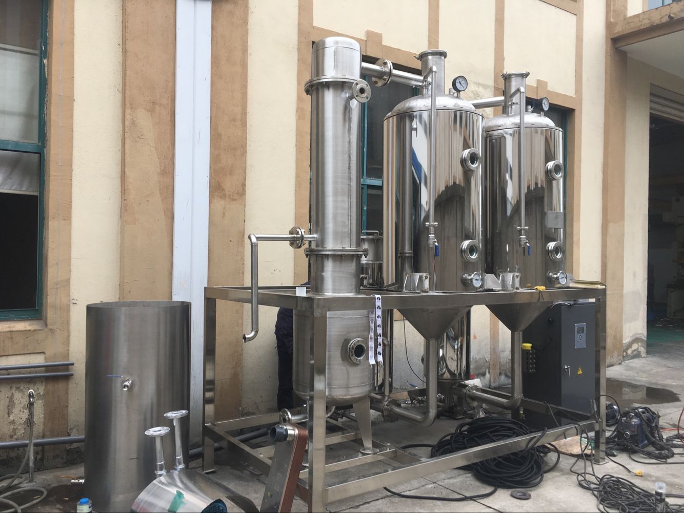 本設備采用列管式循環外加熱工作原理,物料受熱時間短、蒸發速度快,濃縮比重大,保持物料原效。